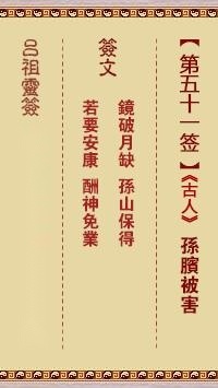 人的一生就像在大路上一样,如果路途比较平坦,那么做起事情来也很顺利,倘若路途很崎岖的话,那么一生就很多困难险阻,不过在崎岖的道路上,只要你有坚定的信心,不要遇到麻烦事就焦躁,要有一颗理智的心去面对,不急不躁去选择最佳的路,还是有比较平坦的路让你去走,坚定自己的信心,还是可以到达人生的最终点,所以说抽到吕祖灵签第五十签的人,这里告诉你的就是,你遇到困难不人退缩,要去面对,懂得去解决,虽然成功的终点有点远,但是坚持依然成功属于你。