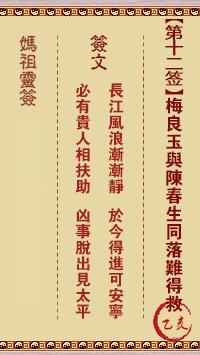 妈祖,是中国东南沿海中心的海神,是中国唯一一位帮助沿海黎民百姓消灾减难的女海神。所以妈祖也被称为圣母,天妃,天后,湄洲娘等等。在宋朝的时候,妈祖就已经遍布中国东南沿海地区,不仅如此,日本、越南等地都可以看到妈祖神庙的建置,这也证明了妈祖为海上神明的称号。妈祖灵签,又称为天后灵签,网上妈祖庙。妈祖灵签流行多个版本,传播最广的是60签和100签这两种。