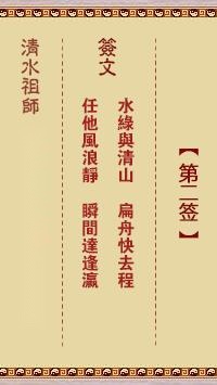 清水祖师灵签共有50签,爱鑫球星座网的清水祖师灵签在求签完成后,均附有详细的求签解签结果供您参考。